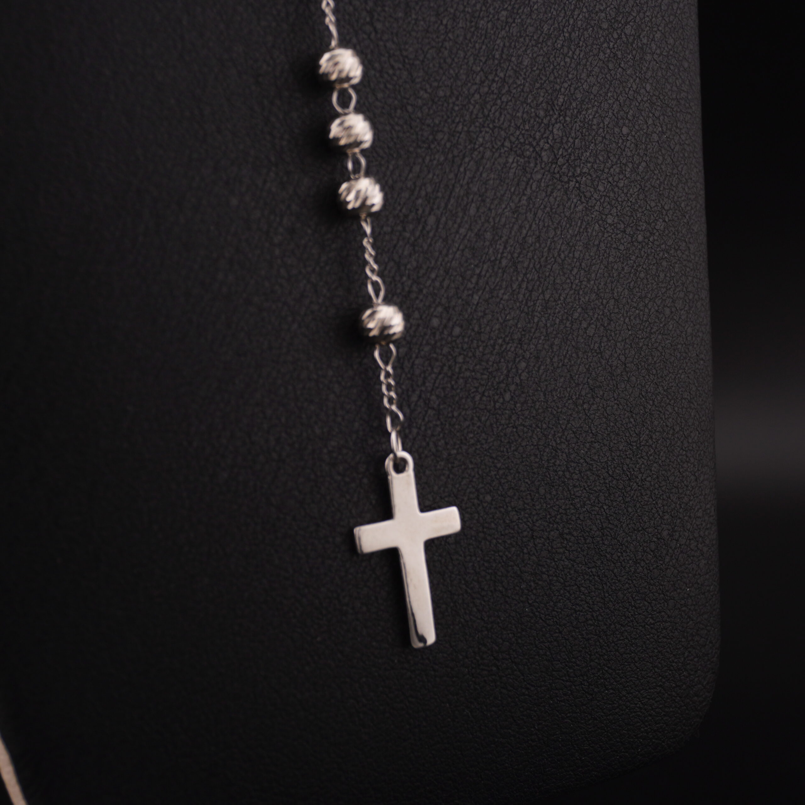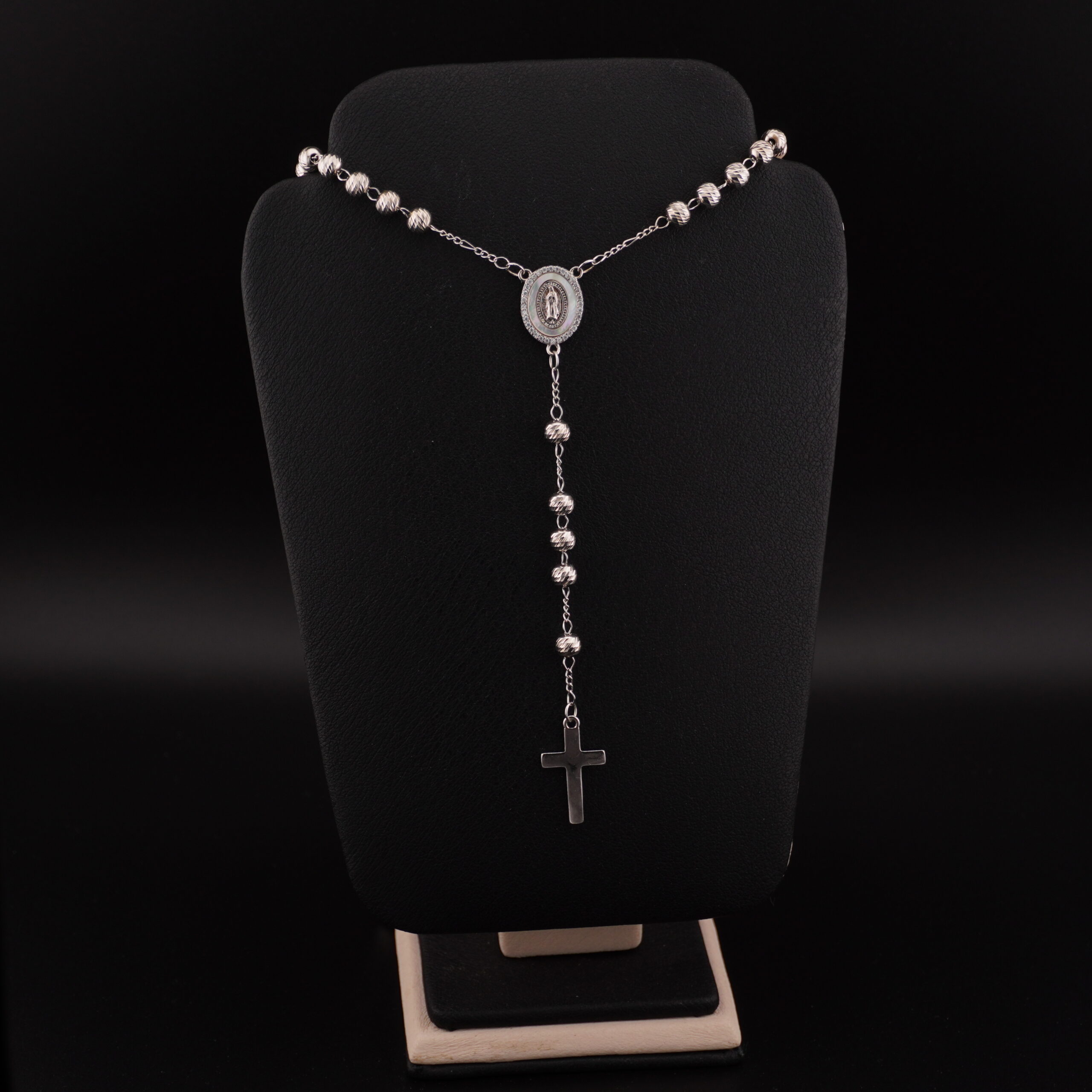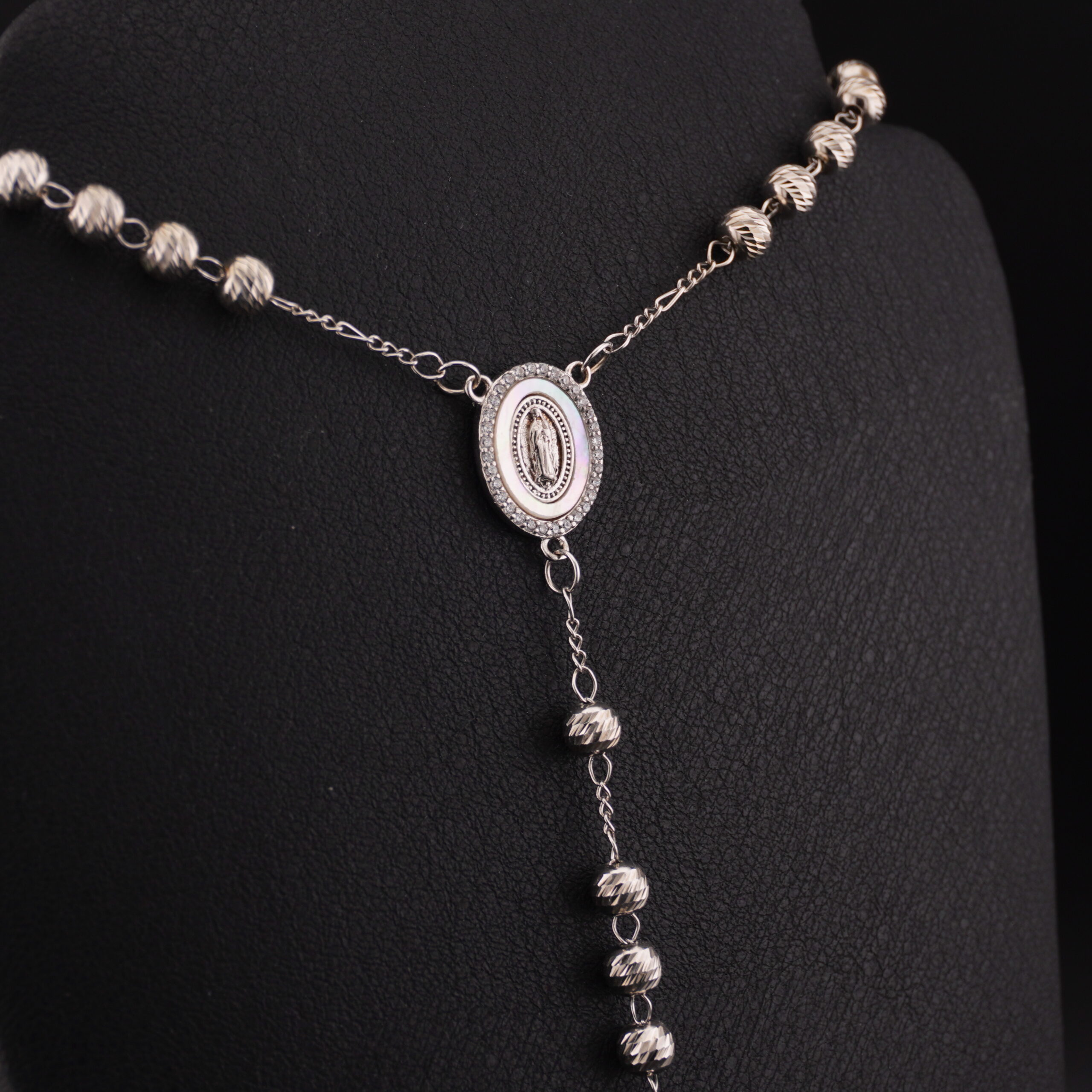 RP1 - ROSARIO DE PLATA RODINADO CON VIRGEN DE NACAR - G cantidad
